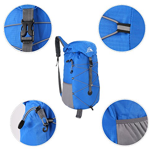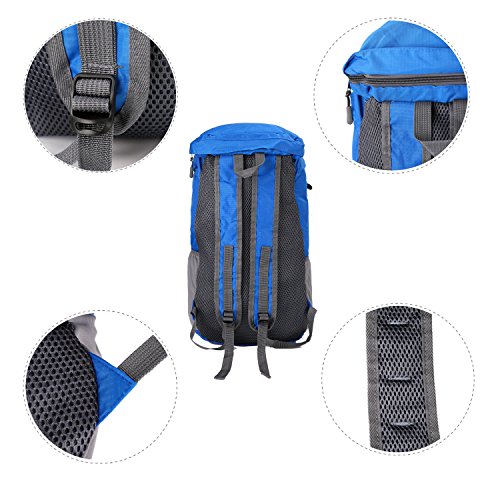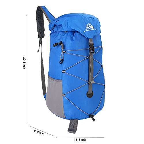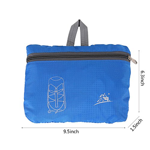 -. Feature : Folds into zippered inner pocket to fit anywhere.Unfolds from pocket to backpack in seconds.Perfect for day trips, vacation, travel, day hikes, school, hiking,camping and shopping. / Unfold size: 20.5x 11.8 x 9.0 inches (H x W x D), Folded size: 9.5x 6.3 x 1.5 inches (H x W x D). LIGHTWEIGHT(0.77LB) and ROOMY(35Liters).The main bag has a compartment to facilitate the storage of different things;2 side mesh pockets for water bottles or umbrellas. / Ultra-light material:The backpack is made from highly rip and water resistant nylon fabric. Adjustable and breathable padded shoulder and strap to meet different requirements for both men and women. / Ultra-durable and Ultra-practical: It's provide strengthen and long-lasting performance with minimal weight. It fits into an ultra-compact pouch. Easy to folds up into small pocket. So you can easily pack it in your suitcase and have an extra bag without it taking up. / Large capacity: Larger than other packable backpack. Large enough to carry what you need in the trip.It's roomy enough for your hammock, clothes , towel, journal ,and a couple beers if needed ,etc
