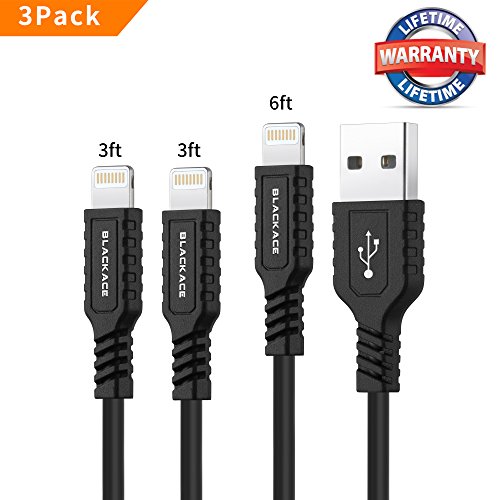 Lightning Cable, Blackace 3Pack 3FTx2 6FTx1 Nylon Braided 8 pin Charging Cables USB Charger Cord, Compatible with iPhone 7/7 Plus/6s/6s Plus/6/6 Plus/5/5S/5C/SE/iPad and iPod (Black)