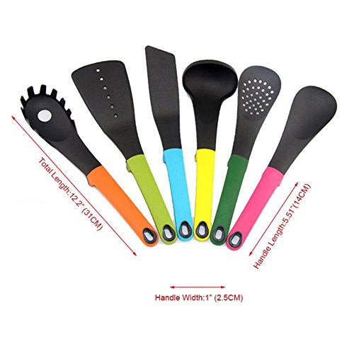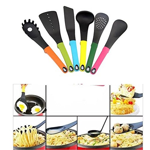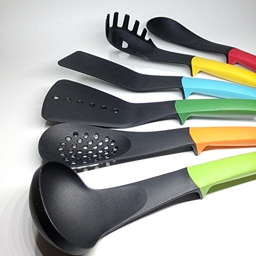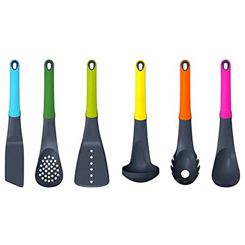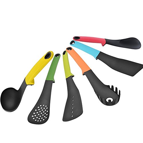 -. Feature : 6 PHIGH QUALITY KITCHEN UTENSIL SET: The Veran cooking tool set contains a soup ladle, skimmer, slotted turner, spoon, slotted spoon, spaghetti server, and a carousel stand for easy access / You'll be able to handle the kitchen accessories set even with wet hands thanks to the thermoplastic rubber handles that are moisture-resistant and lightweight / BRIGHTENS THE KITCHEN: This elevate utensil set is designed in vibrant colors that spruce up any space and make it easier to identify the right tool / EASY TO CLEAN AND DISHWASHER SAFE - Cleaning has never been easier - wash in warm soapy water or simply place them in the dishwasher for convenience. Fits perfectly into all kitchen types and designs / Product features: environmentally friendly, nontoxic, non-stick, durable, safe, easy to clean. Package: 1 x Cooking Utensil( 6 pcs)