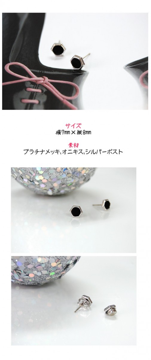***ブラックオニキスを6角形の枠とあわせたシック&クールなピアス!シンプルデザインでデイリーお洒落にピッタリのアイテムです☆***【サイズ】7mm【素材】プラチナメッキ、オニキス、真鍮、シルバーポスト【メーカー】uniqby
