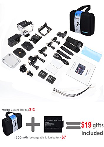 Connect this action camera to your computer with a USB cable to transfer your entire library, or simply hook up the sports cam directly to your TV via HDMI. Up to 90 minutes of 1080P/60fps video shooting time with the 900mAh battery, 2pcs batteries included,one is in camera, the other is in package