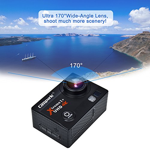 Campark ACT74 Action Cam 16MP 4K WiFi Waterproof Sports Camera 170° Ultra Wide-Angle Len with SONY Sensor,2 Pcs Rechargeable Batteries and Portable Package