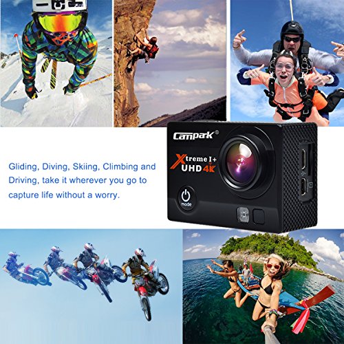2 inch high definition screen that displays and replays good videos recorded. The Campark 4K sports action camera also comes with a nice set of accessories. In addition to the waterproof case, you will get helmet mount kit,4 zip ties, 3 straps, one bicycle mount and more, so it is suitable to use as a helmet camera,bike camera or motorcycle camera.