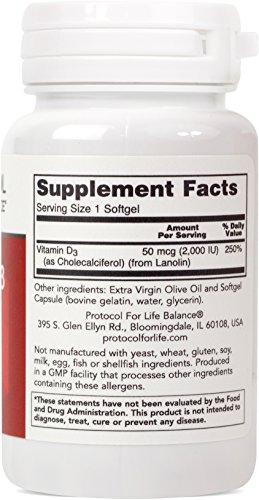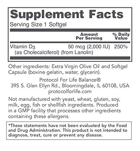 BENEFITS: The major biologic function of vitamin D is to maintain healthy blood levels of calcium and phosphorus. Vitamin D supports bone health by promoting calcium absorption and bone mineralization.* Vitamin D also plays an important role in immune function, helps to regulate cell growth and differentiation.*Protocol For Life Balance® is an A-rated GMP manufacturer of pharmaceutical grade dietary supplements created for healthcare practitioners. Our product line is comprised of effective, science-based formulations intended to address common nutrient deficiencies and support healthy physiological function. These formulations are based on the latest advances in nutritional science and incorporate trademarked ingredients of the highest quality. Our serving sizes are based on doses used in clinical trials and other published data, and the ingredients used in our products have been tested for efficacy in clinical trials and laboratory studies.