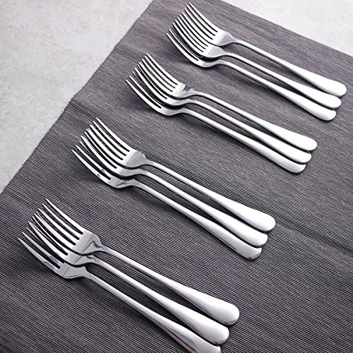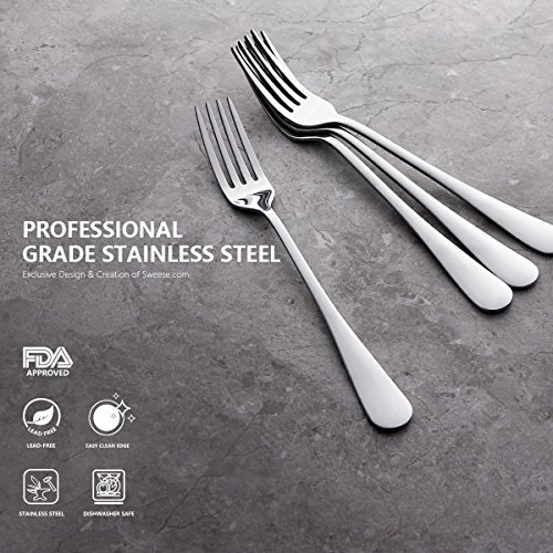 ▶Use for Any Occasion 8 inches long handle assures a comfortable grip and effortless handling. Four prong forks design, simple and nice use for home, restaurant and bar. ▶Set of 12, ENOUGH for family Package includes set of 12 forks. They can be used for many different purposes. The quantity of 12 is so surprise! You could use them to entertain your family and friends. In addition, it will be a good gift for friends who love cooking as well.? ▶Ensure a good mood at table Sweese flatware set has a classic design and clean lines, so these will match any kitchen theme or utensil. The silver color is really beautiful, ensure you a good mood in every meal. SEARCH NO MORE - YOU HAVE COME TO THE RIGHT PLACE Add the?Sweese Dinner Forks?to your cart now! 0