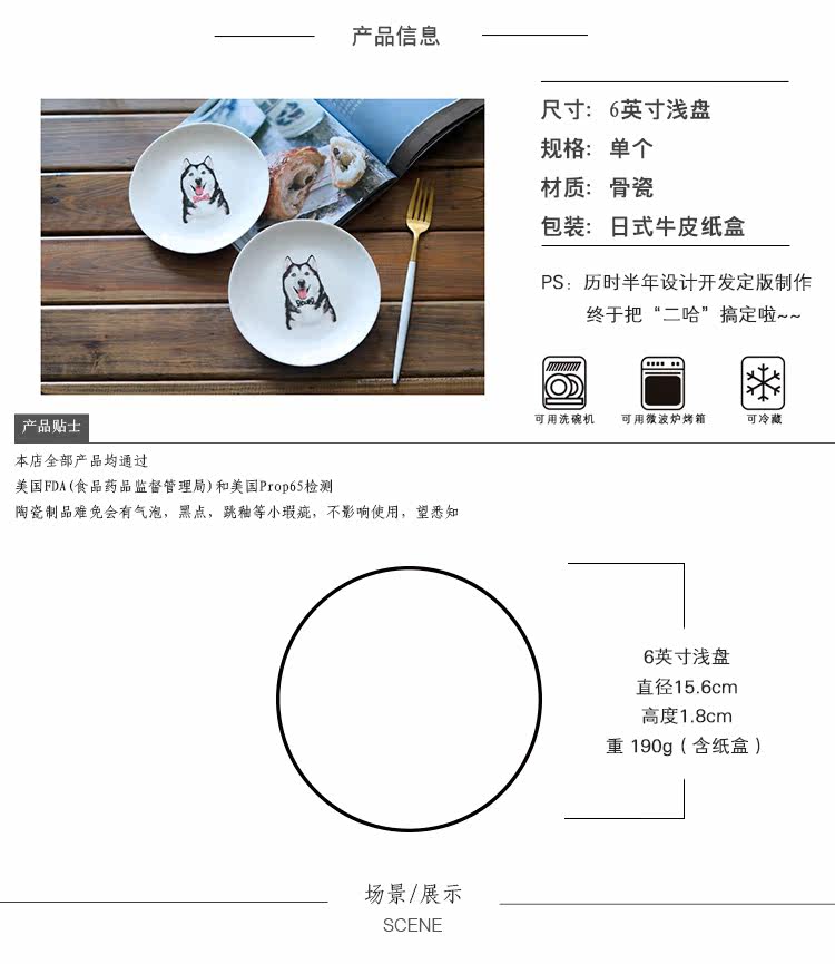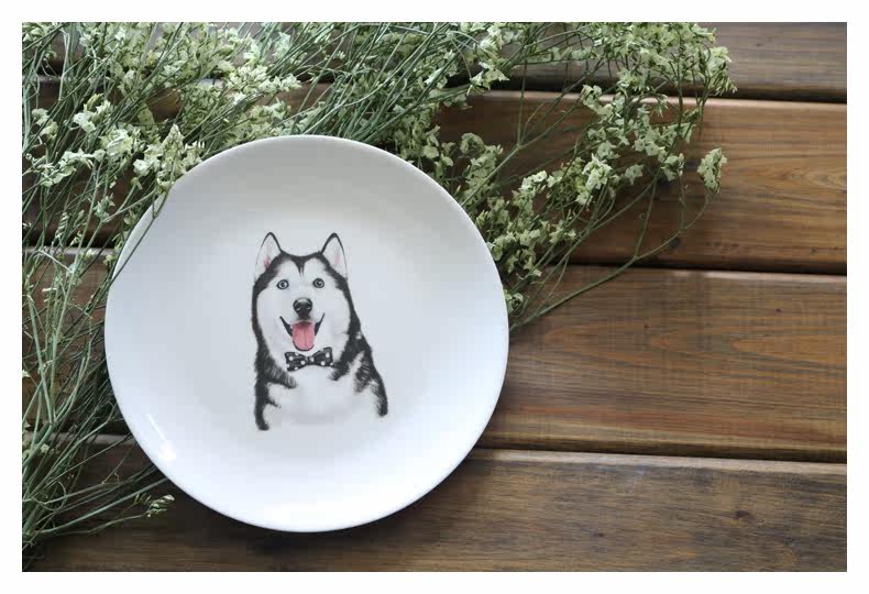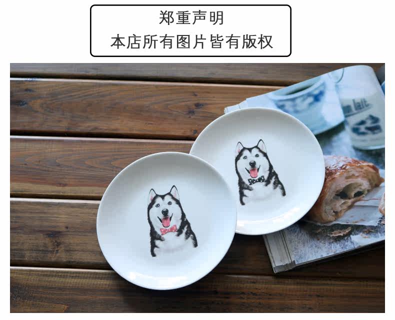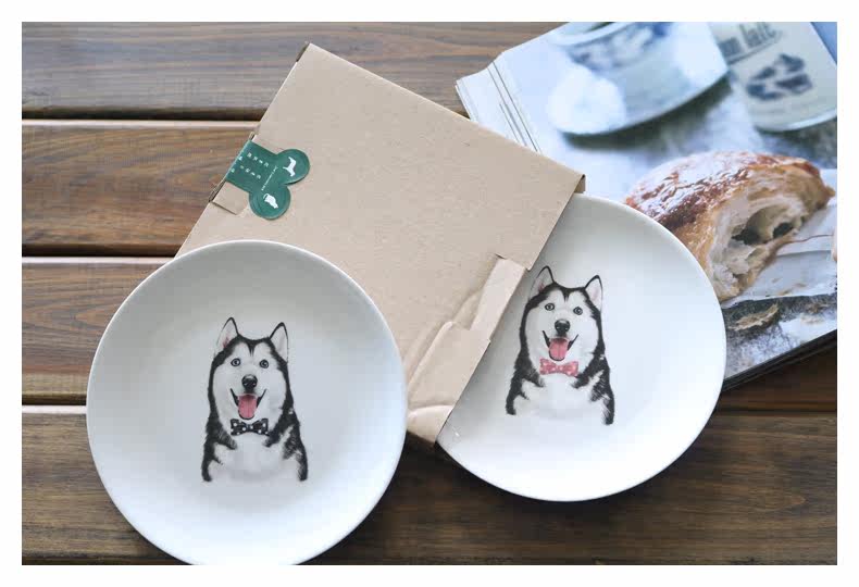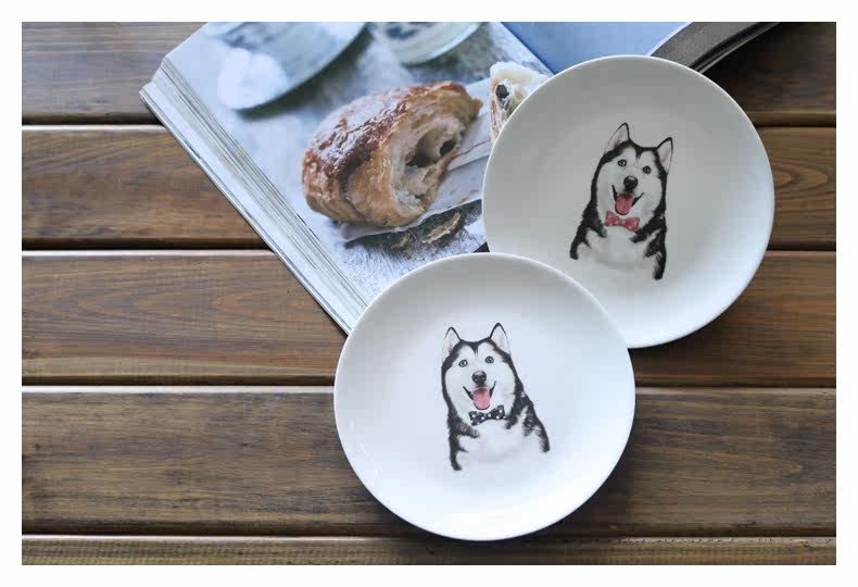 陶瓷卡通动物盘哈士奇狗渣盘小盘子创意早餐盘二哈水果小吃点心盘