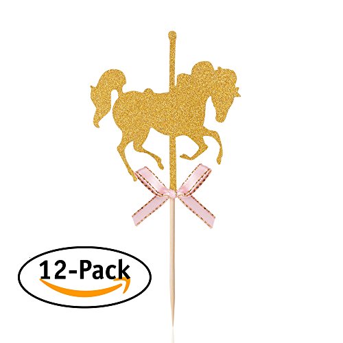 You will love the extra pop these shimmery and glittery carousel horse cupcake toppers. These whimsical carousel horse cupcake toppers are the perfect fit for any princess. They will make any themed party come alive!