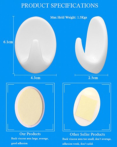 STICKS FIRMLY ON ANY WALL : The larger & improved self adhesive surface ensures firm hold on wall surface and does not fall off easily. Perfect for clothes, hand towels, light decorative items, headphones, jewelry, small pictures, as keyholder or to hang halloween costumes.