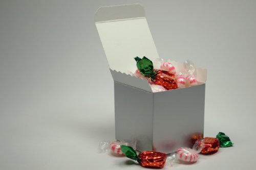 - Title : Silver 3" X 3" X 3" Glossy Wedding Favor Candy Gift Box - Pack of 25