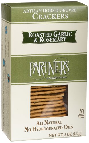 -. Feature : Partners Roasted Garlic & Rosemary Hors D'oeuvre Crackers, 5-Ounce Boxes (Pack of 6) / All Natural / No Hydrogenated Oils / No Trans Fats / Certified Kosher