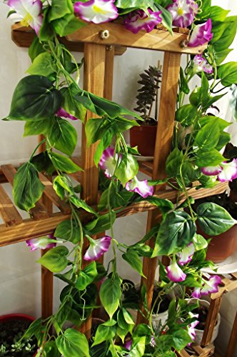 Artificial Morning Glory Vines, Ayfashion 2pcs 15Feet Morning Glory Hanging Plants Silk Garland Fake Green Plant Home Garden Wall Fence Indoor Outdoor Wedding Birthday Decor White