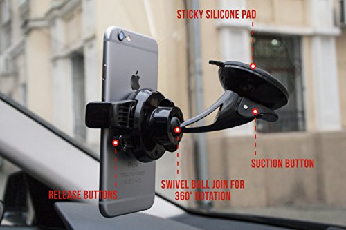 Widras Dashboard Car Mount, Windshield Phone Holder Universal Cradle for Smartphone One Hand Tech w/ Suction Cup Base iPhone 7 7+ / 6s / 5 5s / Galaxy S7 / Edge / S6 /Note 5 /Nexus Pixel