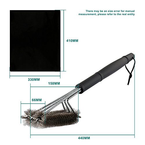 Heavy Duty BBQ Grill Mat: Aikitco grilling brush comes with heavy duty grill mat without extra cost. Smoke mat tested in highest temperature settings. Meaningful for every type of grilling ensemble. Thick non-stick mats used by grilling experts and professional chefs. With BBQ grill-mat combination you do not need to buy grill baskets. Grilling mats extend life of grill and keep it looking new