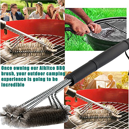 Aikitco 3 in 1 BBQ Grill Brush with Extra Thick Grill Mat - 18" Stainless Steel Barbeque Grill Brush with Woven Wire Bristles. Non Stick BBQ Mats - BBQ Cleaning Accessories