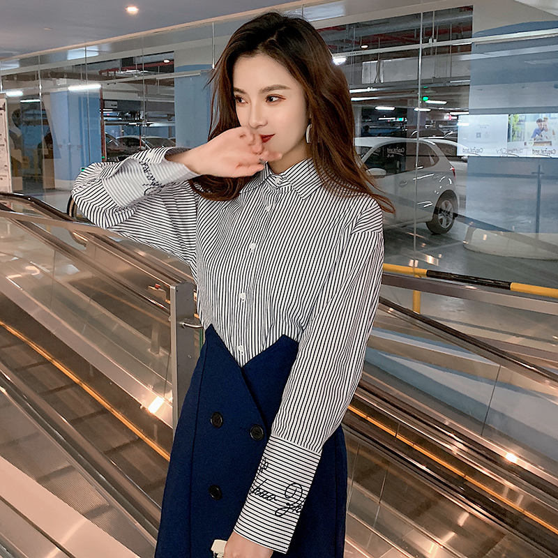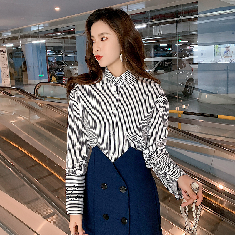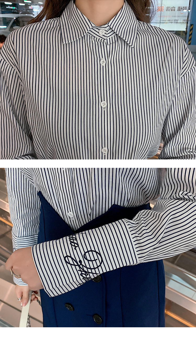 きちんと感のある細ストライプシャツは、ワイドカフスでロゴ刺繍入りがポイント◎