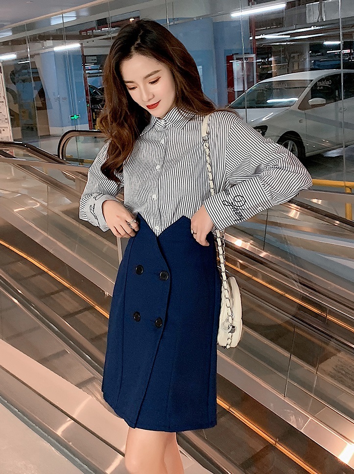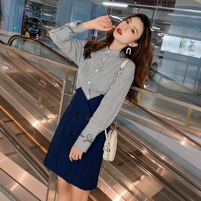 S:バスト 100 / 肩幅 47 / 着丈 57 / 袖丈 60 / ウエスト 66-70 / スカート丈 57