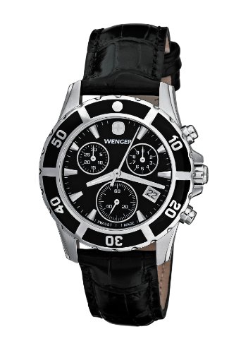 Wenger Women's 70745 Sport Elegance Chrono Black Dial Leather Watch