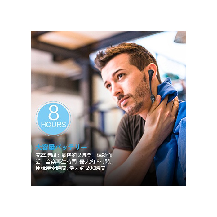 【대용량 배터리】무선 이어폰으로서,전지의 소유 #이 말하고, 1회 약2시간의 풀 충전으로,최대 약8시간의 연속 사용(통화 음악 재생)가 가능합니다.연속 수신대기 시간은 약최대200시간입니다.