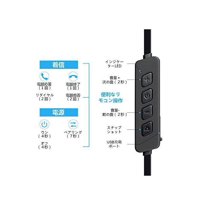 【IPX4?방한성능 대응Bluetooth 4.1버젼 탑재】Bluetooth 4.1버젼을 채용 한 것을에 의해통신이 종래 보다 빨라지고, 전송 효율적이어졌습니다.지연이 없는 클리어인 사운드가 즐길 수 있는 하이《레조이야혼》.방수 규격IPX4등급은 땀으로부터 이어폰을 지킴,런닝 짐 등 스포츠로도 대응 가능합니다.