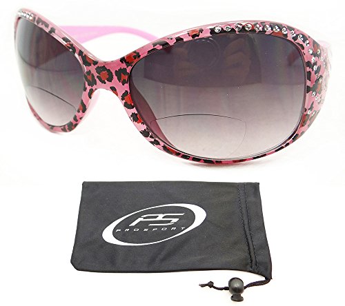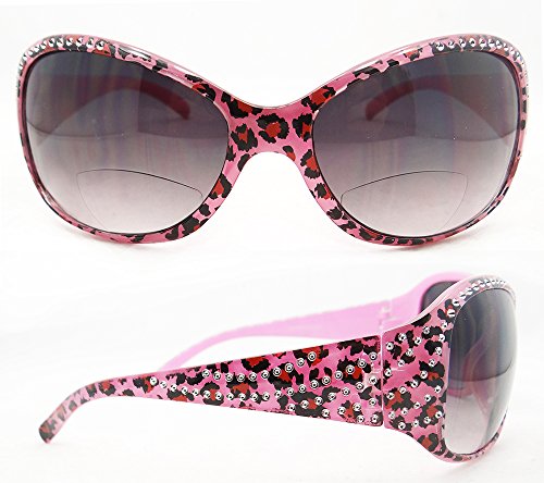 -. Title : Cheetah Design Frame Bifocal Sunglasses with Rhinestones for Women. Bifocal Reading Powers are Available from 1.00, 1.50, 2.00, 2.50 and 3.00.
