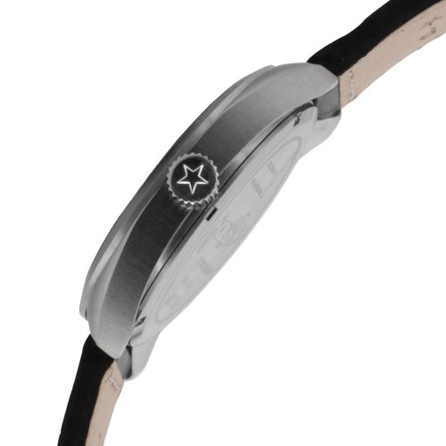 - Feature : Inspired by the power and precision of one of the first turbojet fighters, designer Alexander Shorokhoff features a striking aviation timepiece with the look right out of the cockpit and bold features, you'll be ready to take on any mission / Swiss part 3h with GMT and date / Genuine mock croco pattern leather / stainless steel case and buckle / Black dial with lum index, GMT and date window, mineral crystal lens / Water-resistant to 100 M (330 feet)