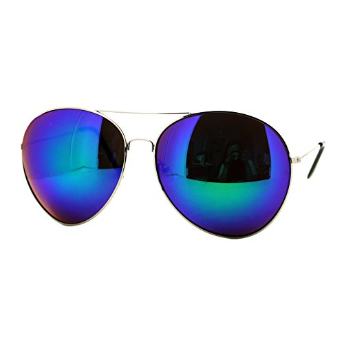 -. Brand : JuicyOrange -. Department : unisex-adult -. Feature : Measurements: 5 7/8" (149 mm) W x 2 1/2" (63.5 mm) H / 100% UV 400 Protection / Polycarbonate Lens / Soft black pouch included / Original photo and description by JuicyOrange. -. ProductGroup : Apparel -. ProductTypeName : EYEWEAR -. Title : SUPER Oversized Aviator Sunglasses Big Metal Frame Multicolor Mirror Lens