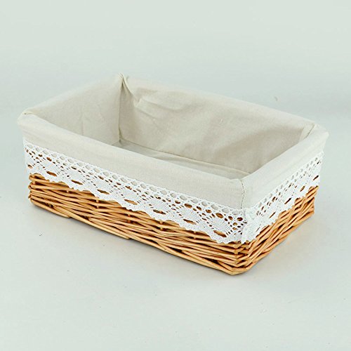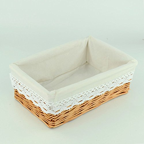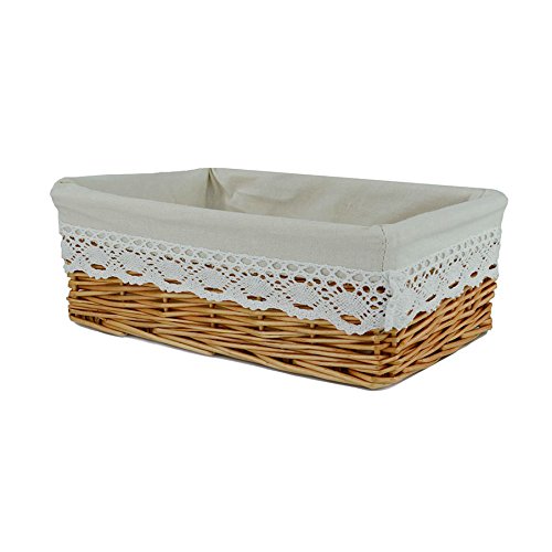 RURALITY Rectangular Wicker Woven Storage Basket with Liner,Small