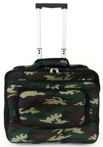 -. Binding : Electronics -. Brand : Trendy Flyer -. Color : Green -. EAN : 0765857887449 -. Feature : Color: Green, Army Green, Brown and Black / Material: Polyester / Pattern: Army / Size: 16"L x 14"H x 8"W/ Weight: 5.8 lbs. / Measurement from ground to top of handle (with handle fully extended): 40" -. Label : Private -. Manufacturer : Private -. PackageQuantity : 1 -. ProductGroup : PC Accessory -. ProductTypeName : CARRYING_CASE_OR_BAG -. Publisher : Private -. Studio : Private -. Title : Trendy Flyer 16" Computer/laptop Briefcase Rolling Padded Bag Case Wheel Office Army Green -. UPC : 765857887449