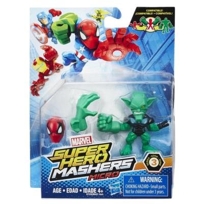 -. Binding : Toy -. Brand : Super Hero Mashers Micro -. EAN : 0713807532918 -. Feature : Create your own Marvel adventures with the world's greatest collection of Super Heroes / These Marvel Super Hero Mashers Micro figures are customizable and include 3 connection points allowing kids to detach head and arms, then reconnect them where they want! / Universal connectors let kids swap parts with other Super Hero Mashers figure, giving them the freedom to create their own superhero mash-up / Re-create the excitement of Marvel's hit TV shows and blockbuster movies / Additional connection points allow kids to attach battle gear and accessories to amp up the mash-up -. Genre : Action -. IsAdultProduct : 0 -. Label : Marvel -. Manufacturer : Marvel -. ProductGroup : Toy -. ProductTypeName : TOYS_AND_GAMES -. Publisher : Marvel -. Studio : Marvel -. Title : Marvel Avengers Super Hero Mashers Micro Series 3 Action Figure - Ultimate Green Goblin -. UPC : 713807532918