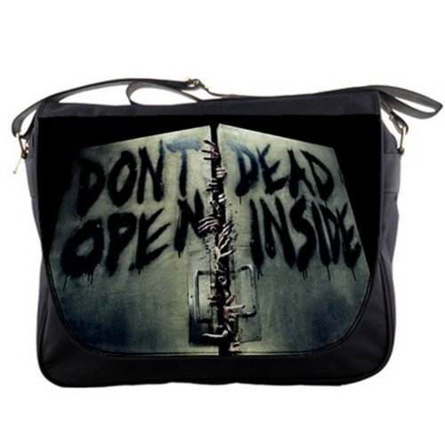 -. Binding : Electronics -. Brand : Quinn Cafe -. Color : Black -. Department : men -. EAN : 0021850244475 -. Feature : Measures 14"L x 4.8"W x 12"H inches, adjustable 1.5" width nylon shoulder strap (27" min. - 52.5" max.) / Made of black nylon. / Single zippered top inside closure, velcro outside closure. / It can fit 2 packs of A4 paper easily (500 sheets per pack). / 2 internal pockets, image imprinted using dye sublimation process to ensure everlasting effect. -. Label : Quinn Cafe -. Manufacturer : Quinn Cafe -. PackageQuantity : 1 -. ProductGroup : PC Accessory -. ProductTypeName : CARRYING_CASE_OR_BAG -. Publisher : Quinn Cafe -. Size : 14 -. Studio : Quinn Cafe -. Title : Walking Dead DONT OPEN DEAD INSIDE Shoulder Messenger Bag -. UPC : 021850244475
