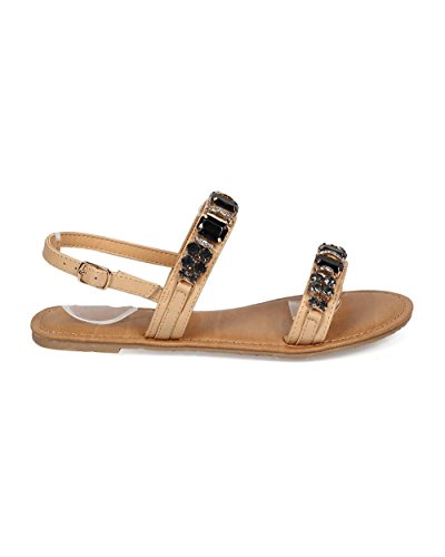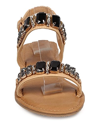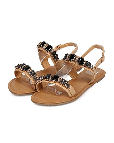 Wild Diva EG00 Leatherette Open Toe Rhinestone Gem Slingback Statement Sandal - Natural