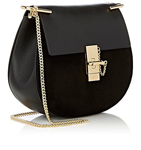 This cross-body Drew bag comes in a tactile qualified leather. This versatile black iteration is crafted to a horseshoe shape that's punctuated with gold-tone metal accents, including the chain and bar-clasp fastening.