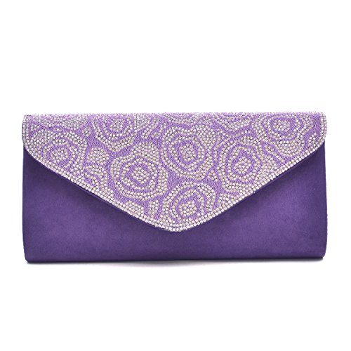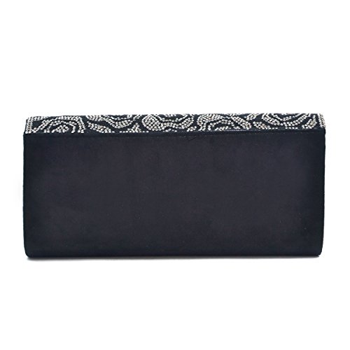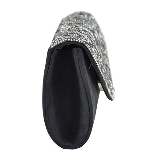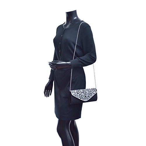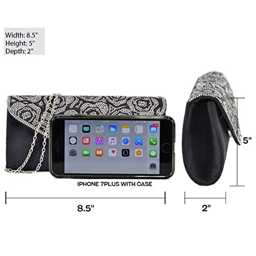 Floral Rhinestone Evening Clutch Purse Shoulder Bag Crossbody w/ Silver Chain for Wedding Party Prom