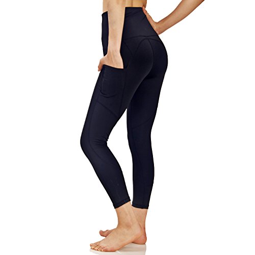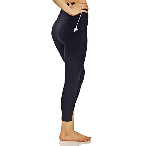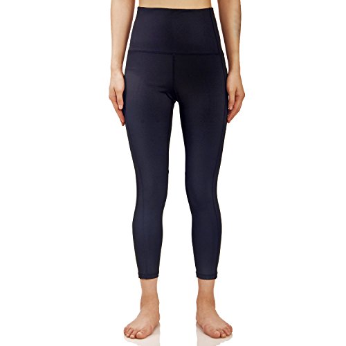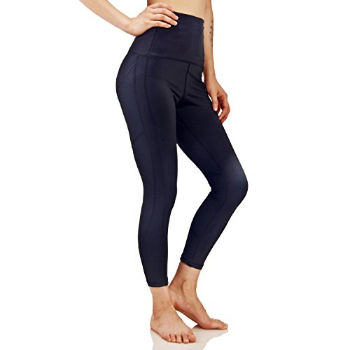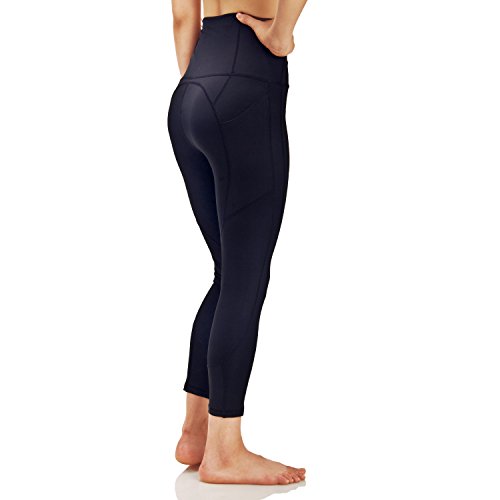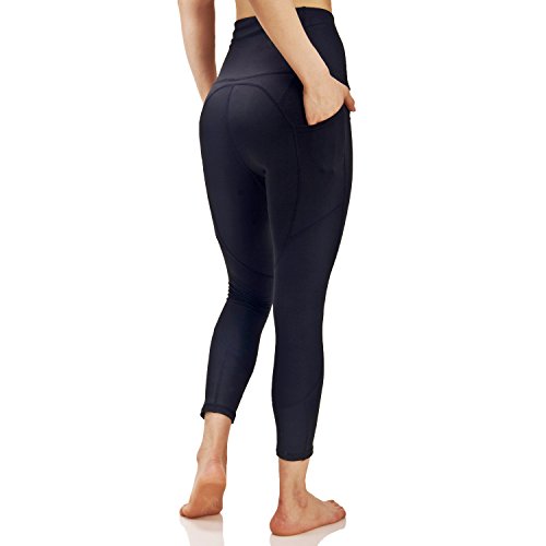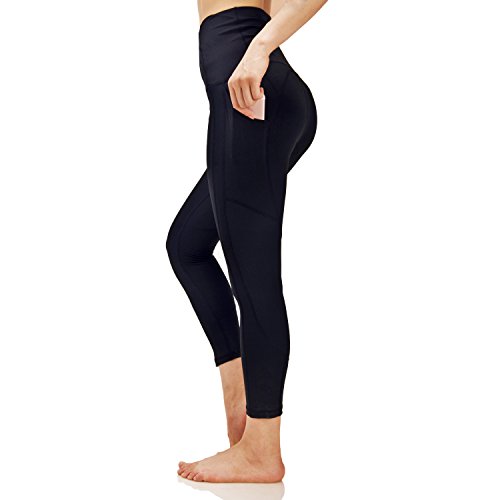 High-Waist Yoga Pants Capris for Women with Pockets - 4 Way Stretch Workout Leggings, Black