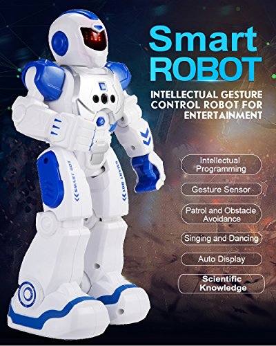Gesture control,Patrol and obstacle avoidance,singing and dancing,intellectual programming,auto display,stunning LED eye lights to entertain you and your kids.