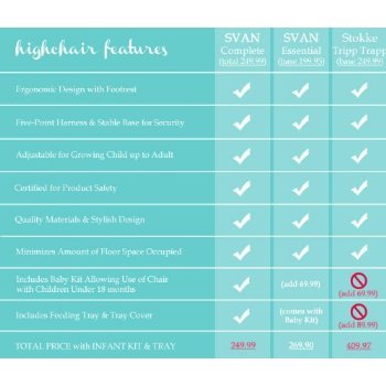 Studio : Svan Publisher : Svan Binding : Baby Product Product Description High Chair - The Signet Essential High Chair makes it possible for toddlers and young children to enjoy sitting at the family table . Its ergonomic design and EASY convertibility (no sweating or multiple tools needed here) fits beautifully into any home. It's safety certified and easy to clean. The Signet Essential High Chair's unique design allows children ages three and up to get into the chair and seat themselves, encouraging independence and interaction. Once your child outgrows the high chair configuration, the chair easily converts into a full-size chair for older kids, teens, and even Mom and Dad. 0