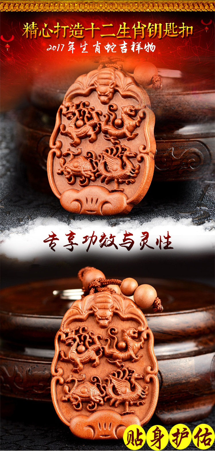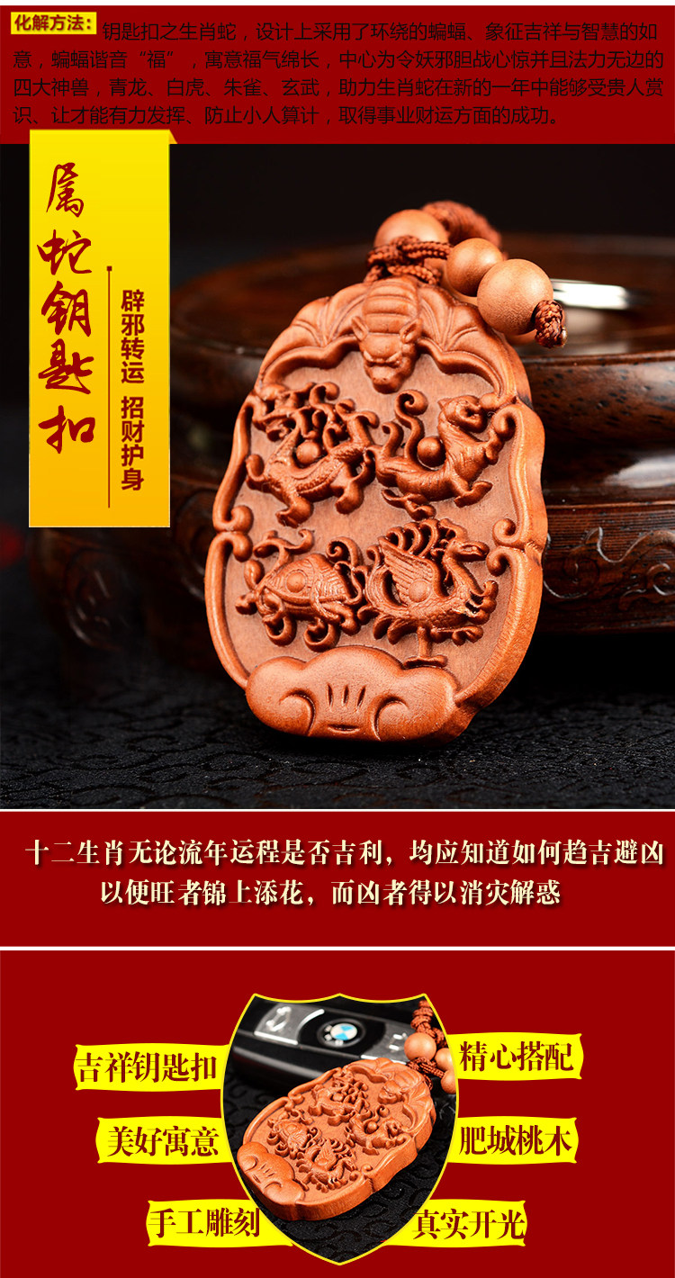 生肖属蛇吉祥物桃木钥匙扣挂件汽车钥匙扣木雕挂件