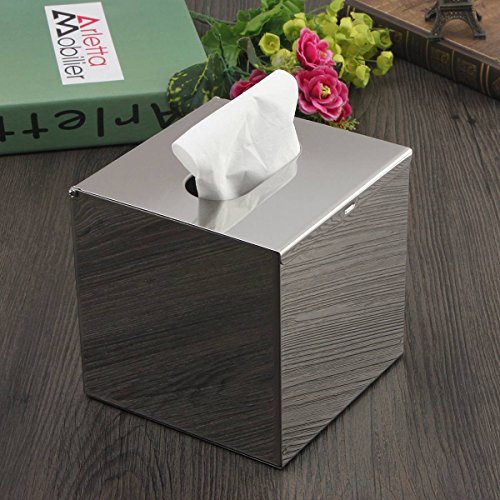 KINGSO Square Stainless Steel Tissue Box Holder Desk Organizer for Home Office Hotel