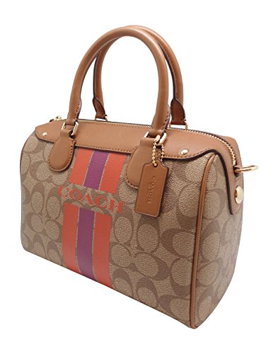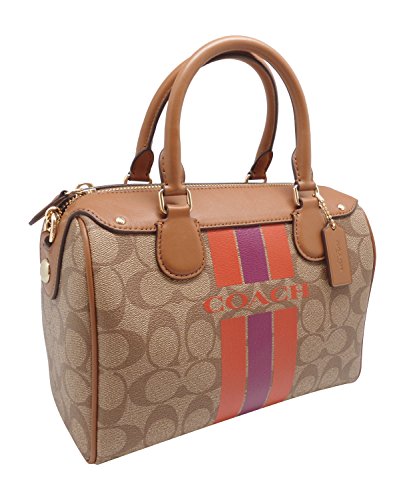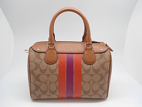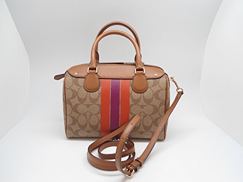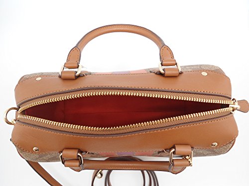 Signature coated canvas Inside zip, cell phone and multifunction pockets Zip-top closure, fabric lining Handles with 4" drop Longer strap with 23" drop for shoulder or crossbody wear Outside open pocket Approx. 9" (L) x 6 1/2" (H) x 5" (W)Feature