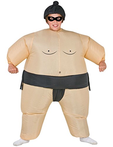 -. Brand : Gameyly -. Color : Brown -. Department : unisex-child -. EAN : 8416077361654 -. Feature : Requires 4 AA batteries; batteries not included. / High density waterproof polyester lightweight material. / An inflatable bodysuit with attachable battery pack and fan and a headpiece. / Available in one standard size which will fit almost all kids comfortably. / Will be the funniest costume at his or her next costume themed party! So pick up your costume today! -. Label : Gameyly -. Manufacturer : Gameyly -. ProductGroup : Apparel -. ProductTypeName : CHILDRENS_COSTUME -. Publisher : Gameyly -. Size : One Size -. Studio : Gameyly -. Title : Gameyly Boys Inflatable Sumo Wrestler Kids Child Fancy Dress One Size Brown