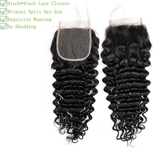 - The Free Part Closure Weight&Length:35g-55g/pc,10”-20”,Density:150%,Deep Curly Lace Closure,Bouncy Shiny,Natural Hairline,No Shedding,Tangle Free.Light Brown 4X4 Swiss Lace,Soft And Full,Smooth,No Smell,Never Hurt Skin.