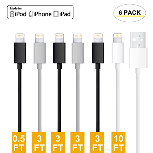 Gopala Lightning to Usb Cable, 6Pack 0.5FT/3.0 FT /10FT (0.5M/1.0M/3M) Apple MFi Certified for iPhone 7/7 Plus 6/6s Plus 5s/5, iPad mini/4/3/2, iPad Pro Air 2