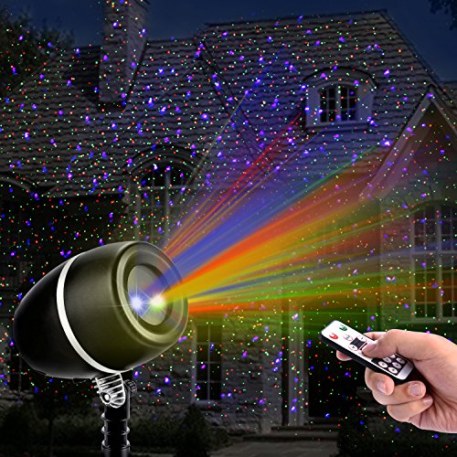 【WIDE COVERAGE&REMOTE CONTROL】-This laser light could cover up to an area over 3000 square feet.Suitable for outdoors and indoor activities.For a better version,this projector provides the remote control,which will be very convenient especially in raining or snowing days.