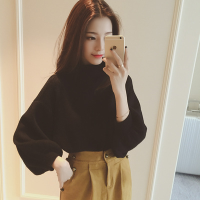 宝贝编号:半高领灯笼袖针织衫E9518