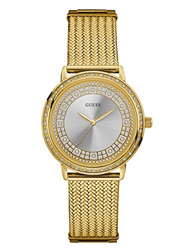 A silver-tone mesh strap gives this analog timepiece a modern design, finished with rhinestone embellishments around the bezel. Blank dial lends a sleek and sophisticated look.