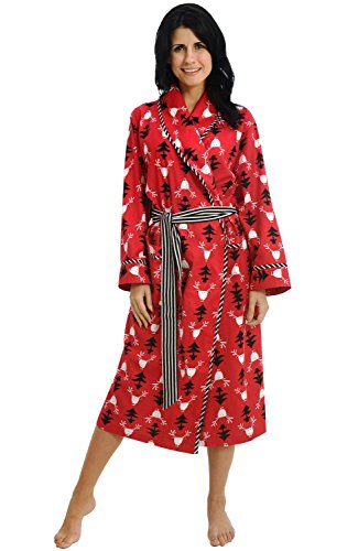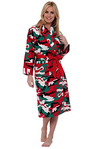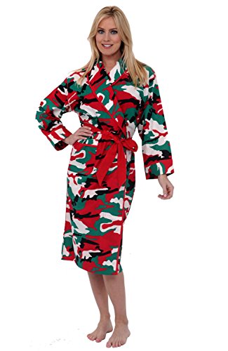 Del Rossa Women's 100% Cotton Printed Flannel Bathrobe Robe, One Size Fits Most Christmas Camo (A0514N26MD)