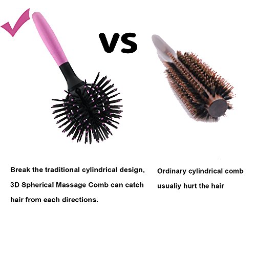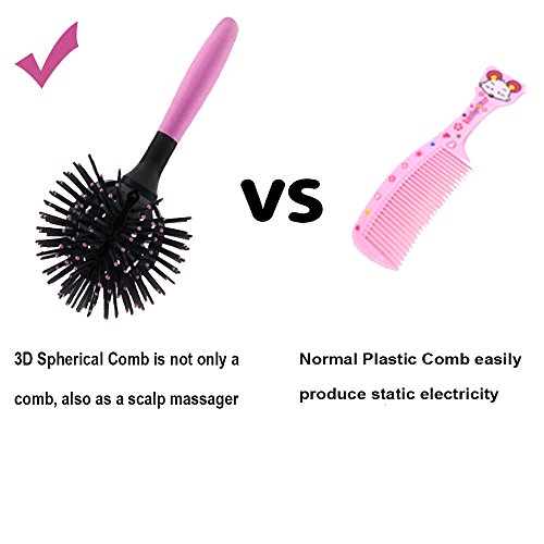 Zinnor 3D Spherical Massage Comb Curl Brush Hair Styling Tool Hot Curling Tangle Free Brush Pink