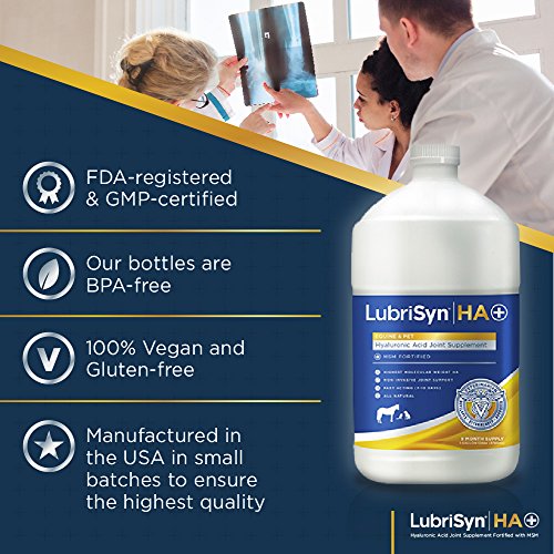 100% NATURAL, ORGANIC AND VEGETARIAN: Unlike other liquid hyaluronic acid supplements sourced from animals, the hyaluronic acid in LubriSyn's formulas is extracted from a microbial source, making it vegan and gluten-free. This bio-identical synovial fluid most closely matches the hyaluronic acid found naturally in your pet's body. Our FDA-registered facility is GMP-certified, and our products are manufactured in the USA in small batches to ensure the highest quality.