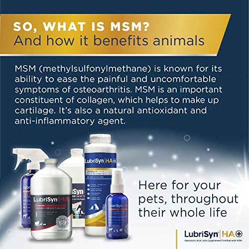 PROMOTE JOINT STRENGTH AND HEALTH: Advanced LubriSynHA + MSM is a powerful joint lubricant and anti-inflammatory for your feline, canine and equine companion, supporting hip and joint mobility and protecting the structural integrity of cartilage and connective tissues.