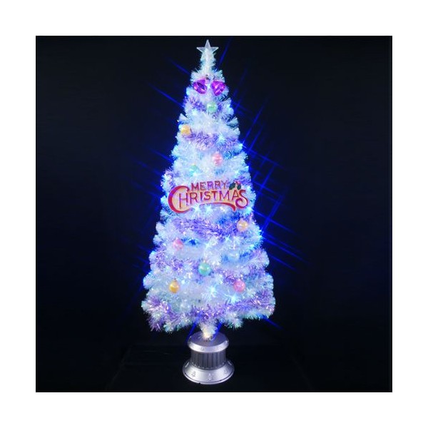 クリスマスツリー 葉先が光るファイバーツリーにブルーのLED球をセットしたクリスマスツリーセットです。豪華なオーナメントで飾り付けました。LED球は点滅・常点の切り替えができます。サイズ 直径75cm×1高さ180cm梱包  1個口外箱  23cm×34cm×153cm(セット明細)・180cmクリスタルファイバーツリー・14.5インチMCプレート・60mmパステルボール・3インチツインプレーンベル・5インチスノーチャンキーティンセル女の子のお子様に人気の白いファイバーツリーです!大きさも180cmと存在感抜群のクリスマスツリーです!